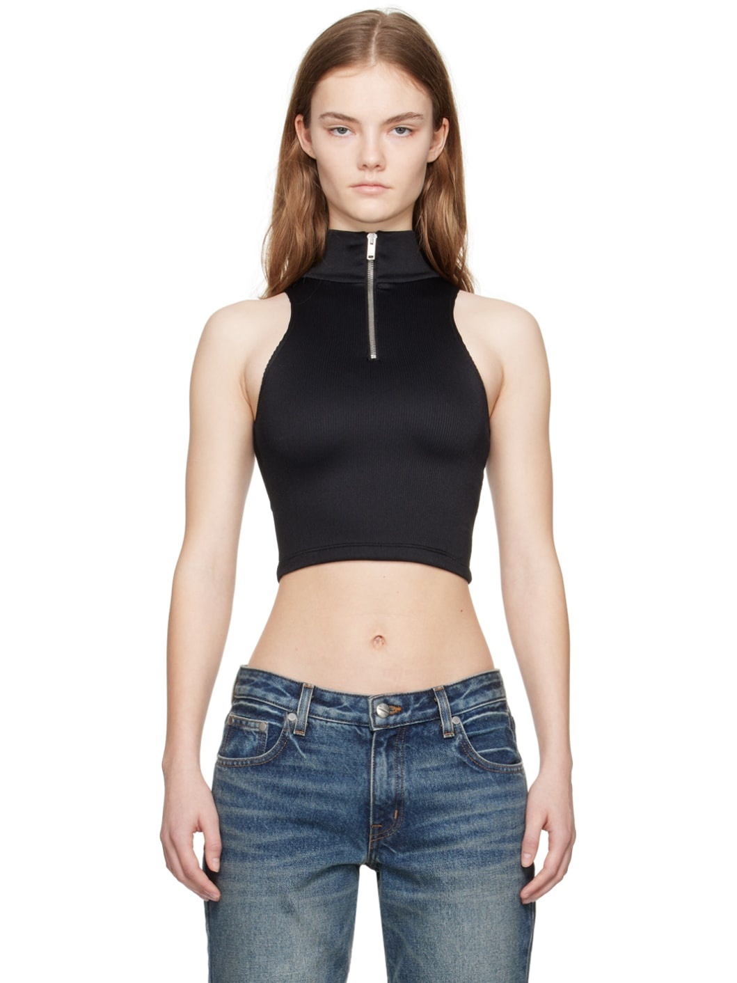 Rib knit stretch nylon tank top. · Turtleneck · Half-zip closure Available exclusively at SSENSE. Supplier color: Black 77% nylon, 23% spandex. Made in United States 241923F111000