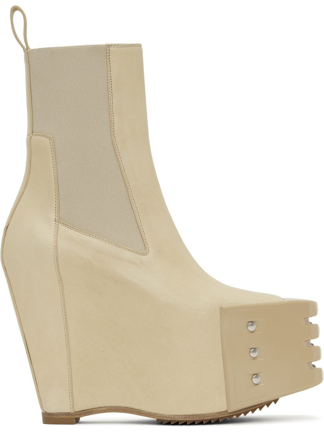 Beige Hollywood Grilled Wedge Beatle Chelsea Boots