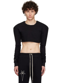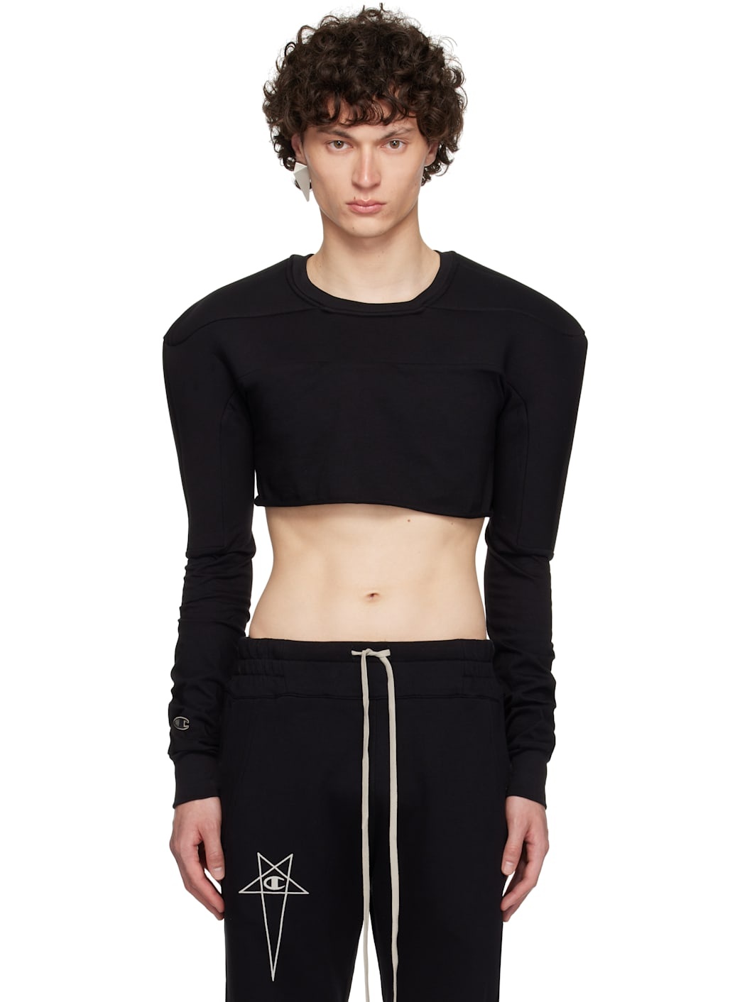 GOTS-certified organic cotton jersey T-shirt. · Rib-knit crewneck and cuffs · Rolled edge at cropped hem · Padded yoke and shoulders · Embroidered logo patch at cuff · Central seam at back Part of the Rick Owens x Champion collaboration. Supplier color: Black Body: 100% organic cotton. Trim: 95% cotton, 5% elastane. Fill: 100% polyurethane. Made in Italy 252232M213001