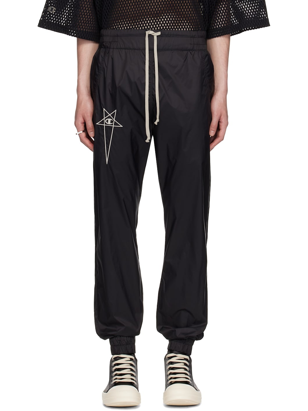 GRS-certified nylon taffeta sweatpants. · Drawstring at elasticized waistband · Four-pocket styling · Logo embroidered at front · Elasticized cuffs · Embroidered logo patch at back Part of the Rick Owens x Champion collaboration. Supplier color: Black 100% polyamide. Made in Italy 252232M190004