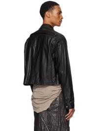 Grained lambskin jacket. · Spread collar · Zip closure · Welt pockets · Adjustable press-stud barrel cuffs · Webbing strap at back yoke · Zip pocket at interior · Full twill and satin lining Supplier color: Black Body: 100% lambskin. Lining 1: 100% cotton. Lining 2: 100% cupro. Made in Moldova 252232M181002