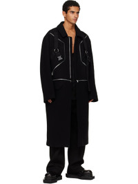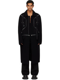 Virgin wool melton coat. · Paneled construction · Spread collar · Zip closure · Integrated harness-style webbing straps at front · Zip and flap pockets at front · Detachable zip panel at waist · Central vent at back hem · Zip pockets at interior · Fully lined · Silver-tone hardware Supplier color: Black Body: 100% virgin wool. Lining 1: 100% cotton. Lining 2: 100% cupro. Made in Italy 252232M176013