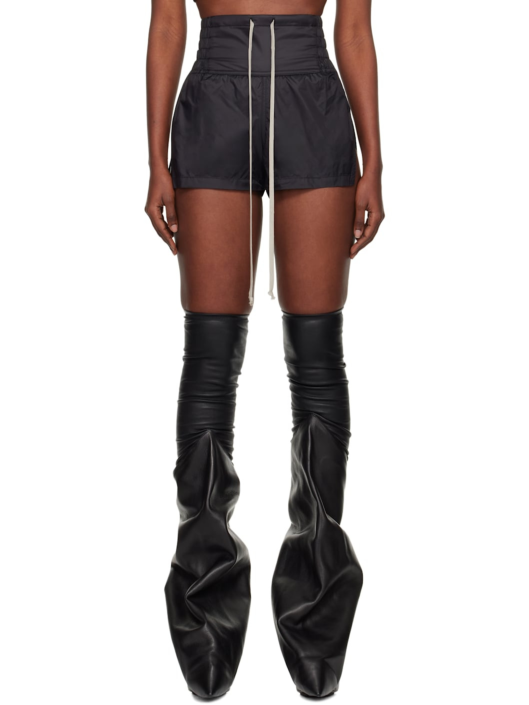 Nylon satin shorts. · GRS-certified nylon · Drawstring at elasticized waistband · Vented side seams Supplier color: Black 100% nylon. Made in Italy 252232F088025