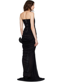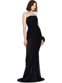 Semi-sheer GOTS-certified organic cotton jersey maxi dress. · Draping throughout · Straight neck · Boning at bodice · Train at hem · Zip closure at back · Partial stretch mesh lining Supplier color: Black Body: 100% organic cotton. Lining: 84% nylon, 16% elastane. Made in Italy 252232F055010