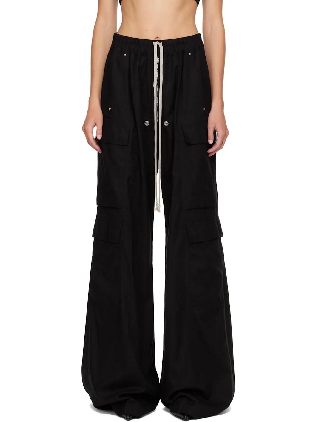 GOTS-certified cotton-blend flannel cargo pants · Wide-leg · Belt loops · Five-pocket styling · Exposed zip fly · Press-stud hardware at front · Cargo pockets at outseams · Dropped inseam Supplier color: Black 81% organic cotton, 19% wool. Made in Italy 252232F087001