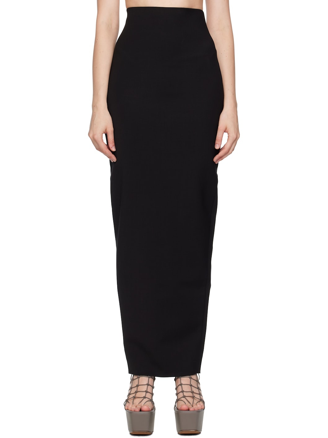 Stretch virgin wool-blend twill maxi skirt. · Darts at waist · Zip closure at back · Central vent at back hem · Full stretch satin lining Supplier color: Black Body: 87% virgin wool, 10% polyamide, 3% elastane. Lining: 94% cupro, 6% elastane. Made in Italy 252232F093013