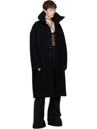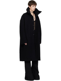 Heavyweight virgin wool melton coat. · Reinforced spread collar converts to funnel neck · Button closure · Welt pockets at front · Dropped saddle shoulders · Utility pocket at sleeve · Central vent at back hem · Zip pockets at interior · Full twill lining · Buffalo horn hardware Supplier color: Black Body: 100% virgin wool. Lining 1: 100% cotton. Lining 2: 100% cupro. Made in Italy 252232M176014