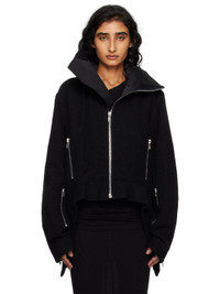 Heavyweight boiled virgin wool twill jacket. · RWS-certified virgin wool · Extended funnel neck · Zip closure · Zip pockets at front · Curved droptail hem · Zip expansion panel at cuffs · Partial cotton twill lining Supplier color: Black Body: 100% virgin wool. Trim: 97% cotton, 3% elastane. Lining: 100% cotton. Made in Italy 252232F063001