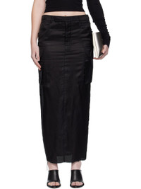Cupro twill midi skirt. · Belt loops · Two-pocket styling · Zip fly · Raw edge at hem · Bellows pocket at side seams · Central vent at back hem · Horn hardware Supplier color: Black 100% cupro. Made in Italy 252232F092024