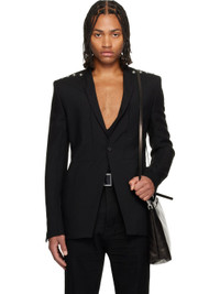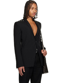 RWS-certified virgin wool barathea blazer. · Peaked lapel · Button closure · Welt pockets at waist · Press-stud hardware at padded shoulders · Surgeon's cuffs · Twin vents at back hem · Welt pockets at interior · Fully lined · Buffalo horn hardware Supplier color: Black Body: 100% virgin wool. Lining 1: 100% cotton. Lining 2: 100% cupro. Made in Italy 252232M195005