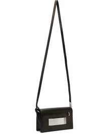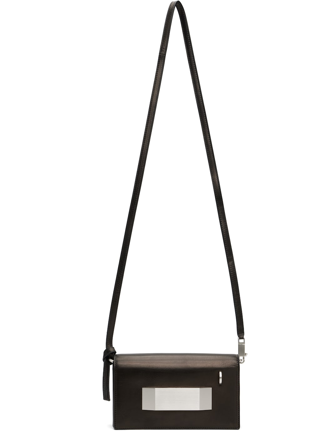 Aniline-dyed buffed calfskin messenger bag. · Detachable crossbody strap · Logo-engraved plaque and D-ring at face · White topstitching at back face · Magnetic flap · Six card slots and two patch pockets at interior · Zip compartment · Logo-engraved silver-tone hardware · H5" x W8.5" x D2" Supplier color: Black Calfskin. Made in Italy 252232M170033