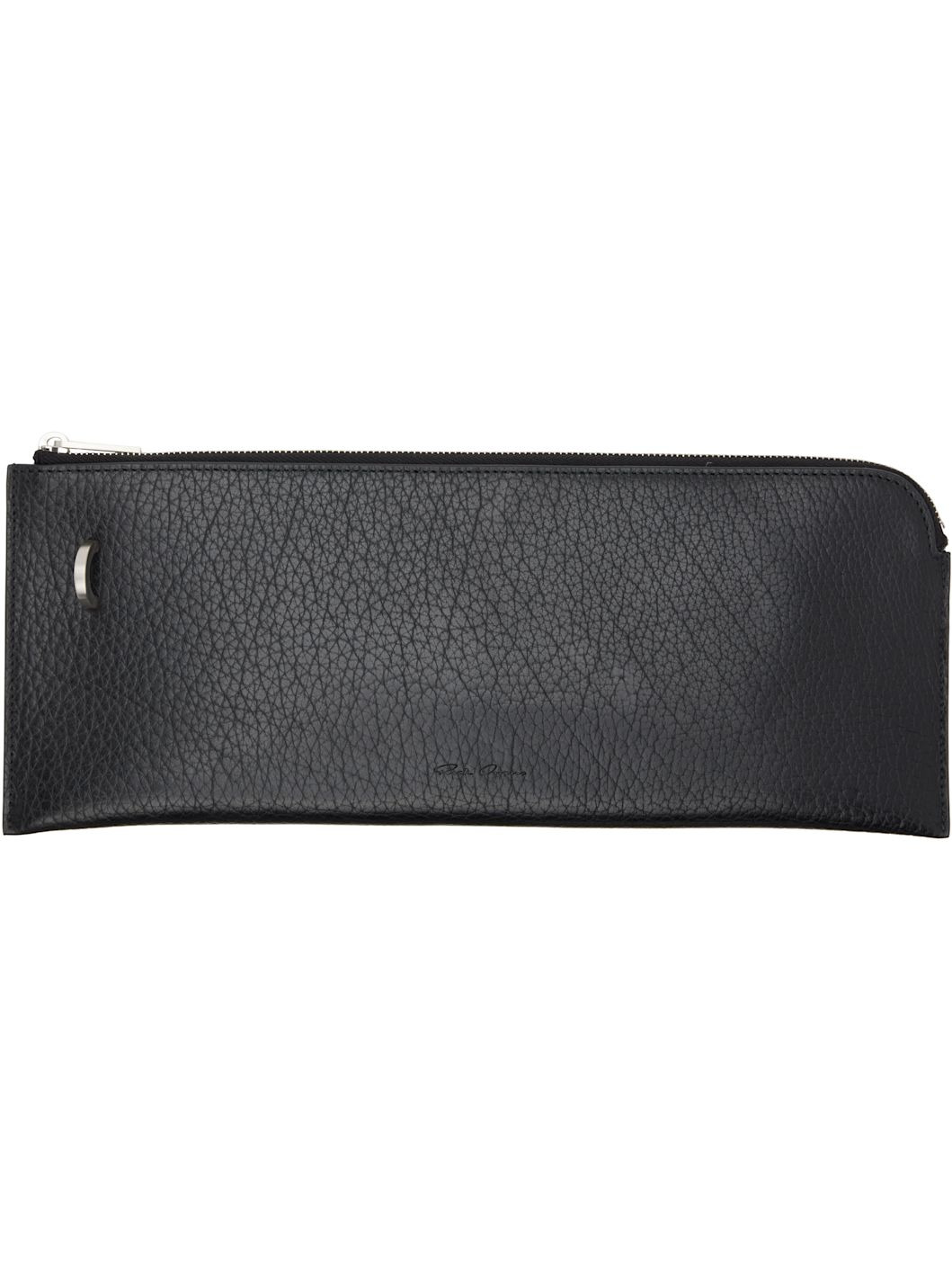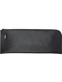 Grained buffalo leather wallet. · D-ring and logo embossed at face · Zip closure · Unlined · Logo-engraved silver-tone hardware · H5" x W12.5" Supplier color: Black Buffalo leather. Made in Italy 252232M164000