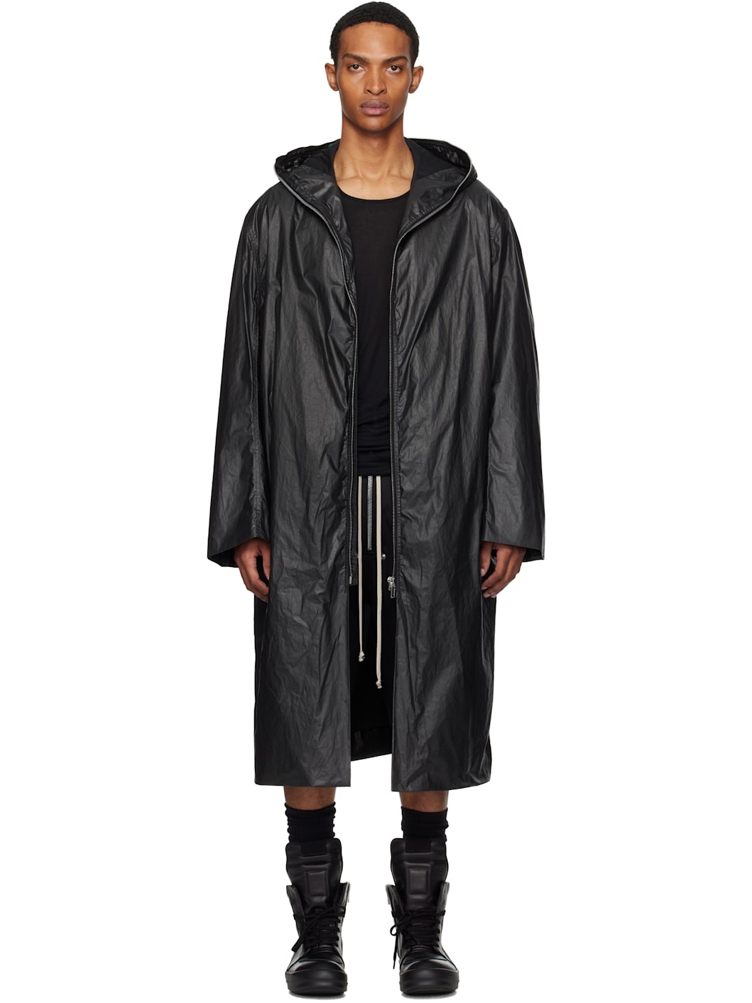 Padded GOTS-certified organic cotton poplin coat. · Water-repellent coating · Zip closure extends to hood · Seam pockets · Webbing strap at back · Central vent at back hem · Zip pockets at interior · Full poplin and satin lining Supplier color: Black Body: 93% organic cotton, 7% polyurethane. Trim: 100% cotton. Fill: 100% polyester. Lining 1: 97% cotton, 3% elastane. Lining 2: 100% cupro. Made in Italy 252232M176002
