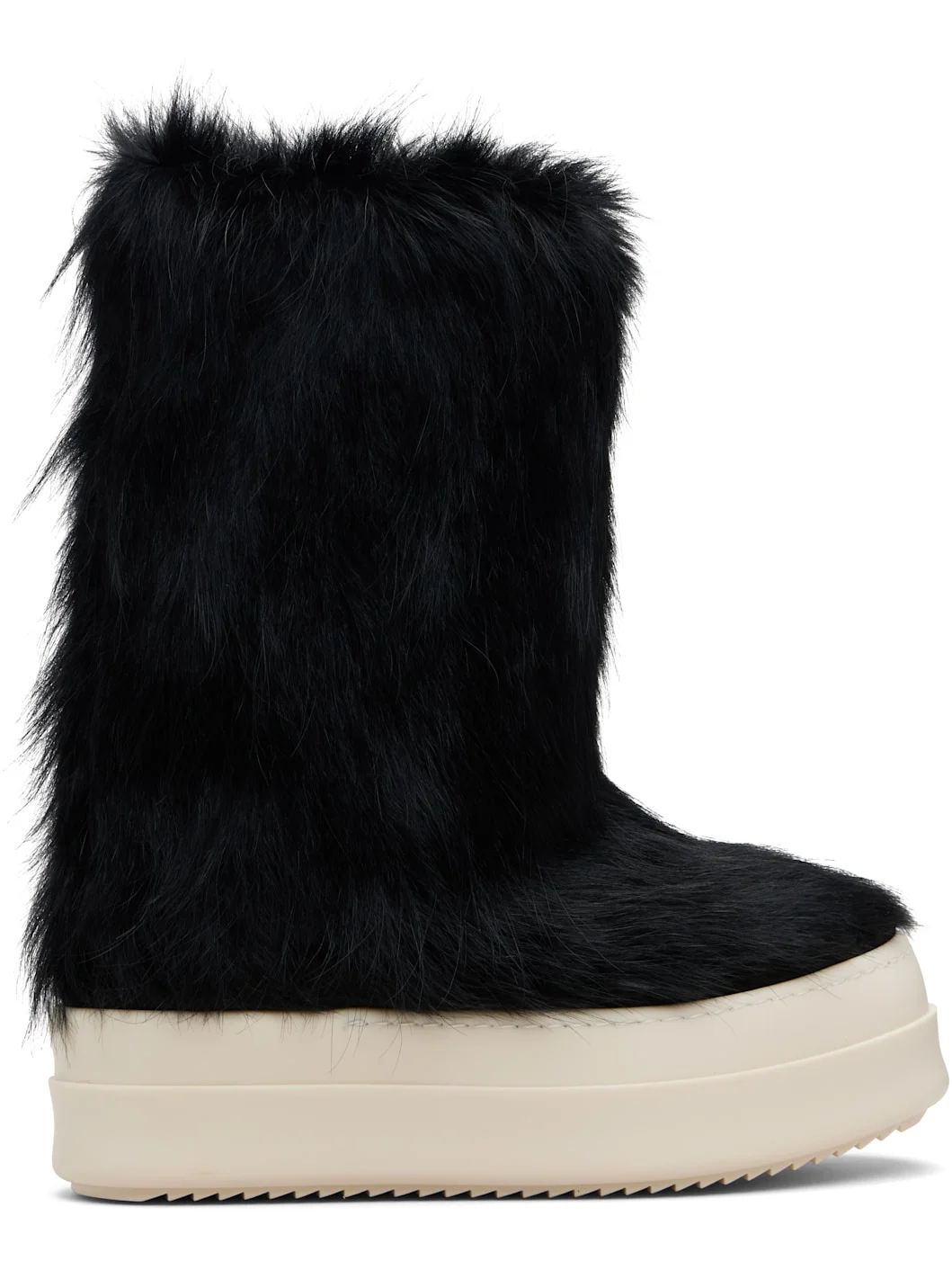 Mid-calf hair-on leather boots. · Mesh lining · Treaded rubber platform sole · Platform: H2.25" Supplier color: Black/Milk/Milk Upper: leather. Sole: rubber. Made in Italy 252232F114003