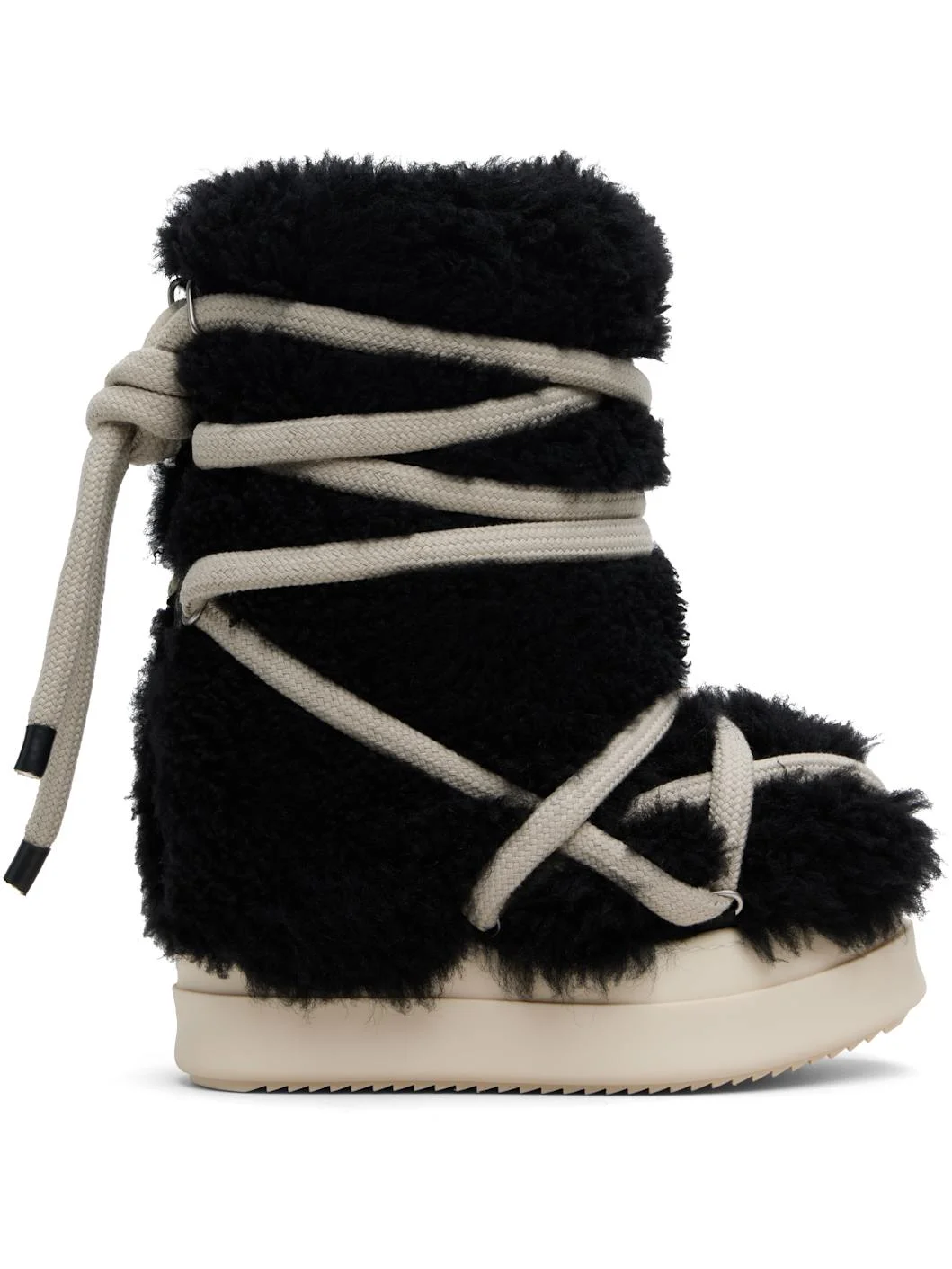 Mid-calf LWG-certified lambskin shearling boots. · Lace-up detailing throughout · Mesh lining · Treaded rubber platform sole · Platform: H2.25" Supplier color: Black/Milk/Milk Upper: lambskin. Sole: rubber. Made in Italy 252232F114005