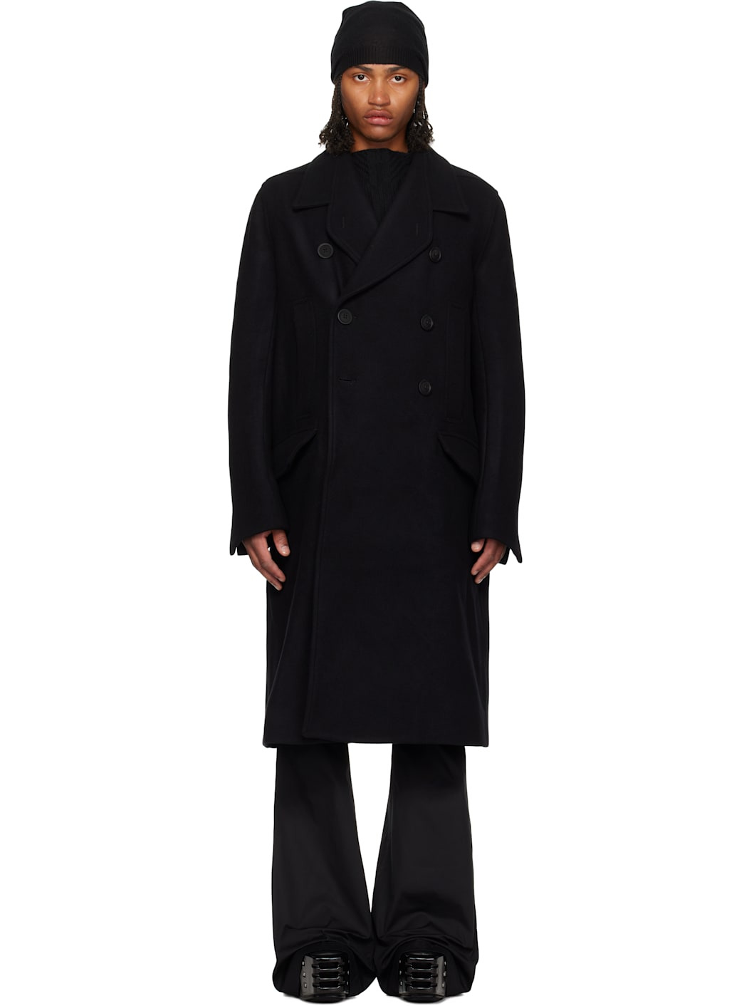 Officer Double-Breasted Melton Virgin Wool Coat Black