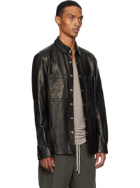 Grained lambskin jacket. · Spread collar · Press-stud closure · Patch pockets · Shirttail hem · Press-stud barrel cuffs · Webbing strap at back yoke · Zip pocket at interior · Full twill and satin lining Supplier color: Black Body: 100% lambskin. Lining 1: 100% cotton. Lining 2: 100% cupro. Made in Moldova 252232M181004