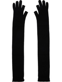 Pair of elbow-length knit virgin wool gloves. · Rolled edge at cuffs, index, and thumb · Logo-engraved press-stud at top cuffs Supplier color: Black 100% virgin wool. Made in Italy 252232F012004