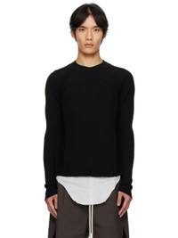 Rib-knit virgin wool sweater. · Crewneck · Reverse-knit panel at front · Tennis-tail hem · Saddle shoulders · Central garter stitch stripe at back Supplier color: Black 100% virgin wool. Made in Italy 252232M201020