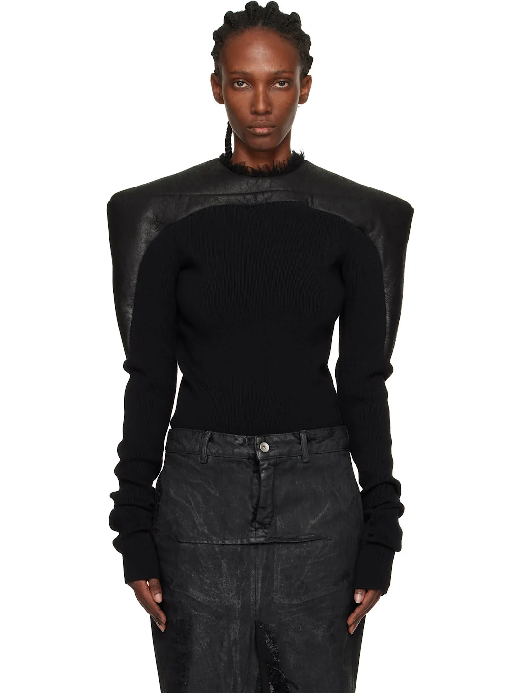 Reversible grained lambskin and rib-knit stretch virgin wool-blend sweater. Reverse in black rib-knit stretch virgin wool-blend and shearling. · LWG-certified lambskin · Paneled construction · Crewneck · Girdered shoulders Suppleir color: Black Body 1: 96% virgin wool, 3% polyamide, 1% elastane. Body 2: 100% lambskin. Made in Moldova 252232F096018