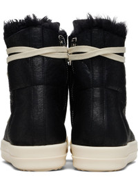 High-top nappa lambskin sneakers. · LWG-certified lambskin · Leather cap toe · Lace-up closure · Zip closure and metal eyelets at inner side · Exposed shearling lining · Treaded rubber sole Supplier color: Black/Milk/Milk Upper: lambskin. Sole: rubber. Made in Italy 252232M236048