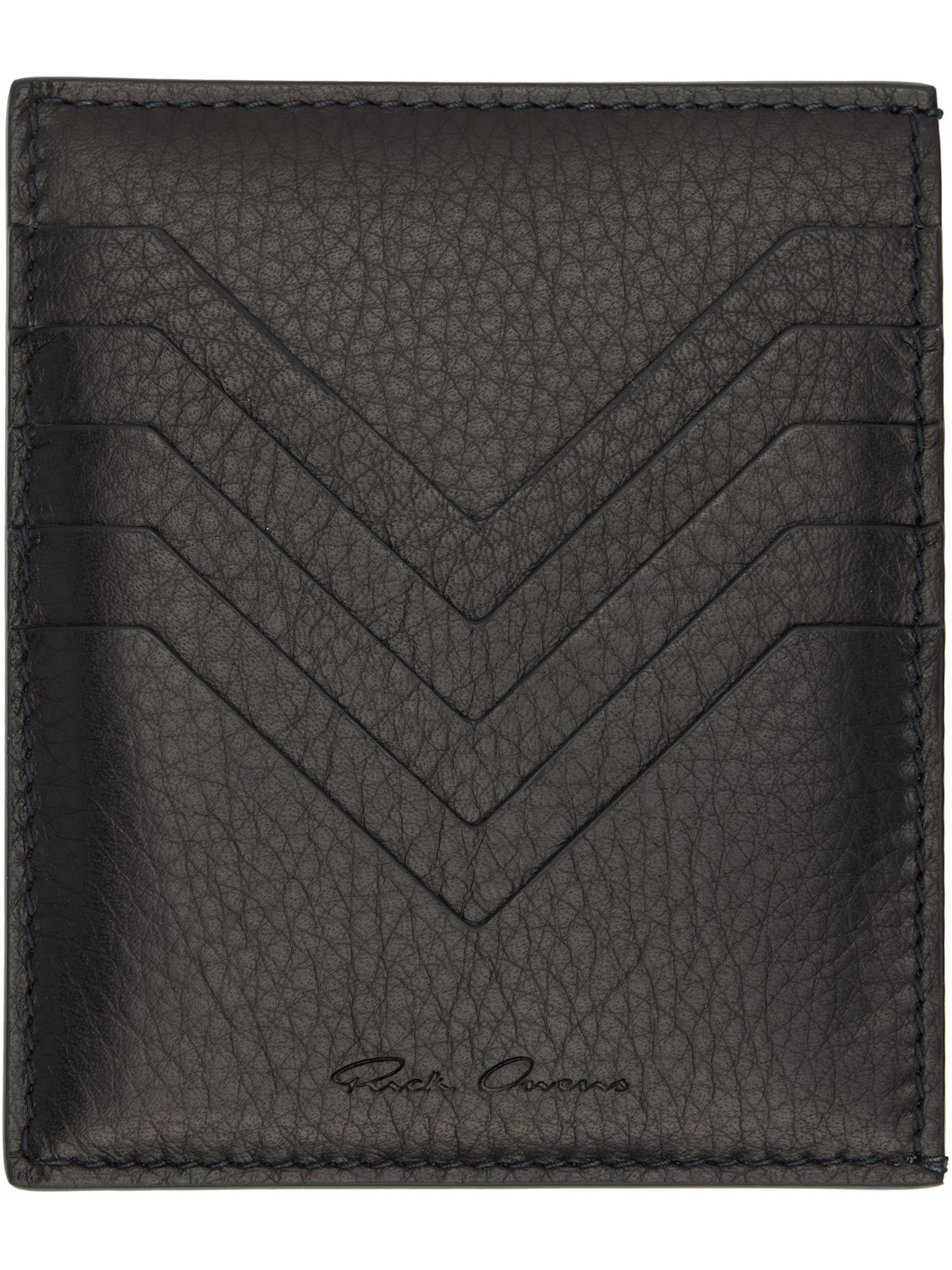 Grained calfskin card holder. · Burnished edges throughout · Logo embossed at face · Six card slots and one note slot · Lambskin lining · H4.5" x W3.75" Supplier color: Black Calfskin. Made in Italy 252232M163001