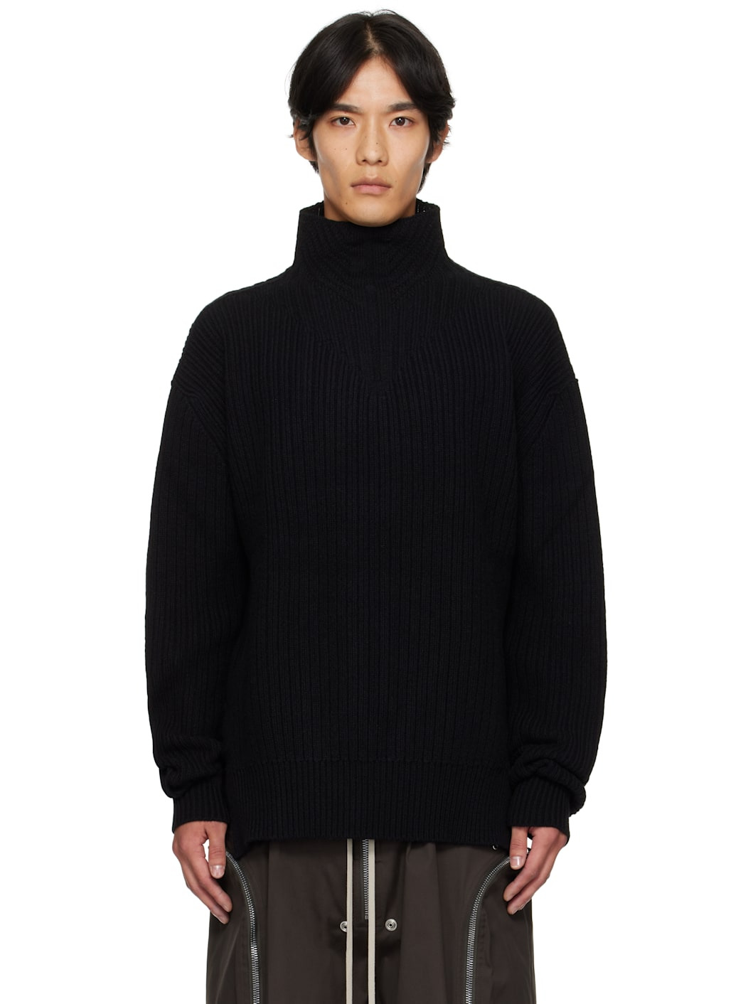 Rib-knit virgin wool sweater. · Mock neck · Vented side seams · Central seam at back · Dropped shoulders Supplier color: Black 100% virgin wool. Made in Italy 252232M205006
