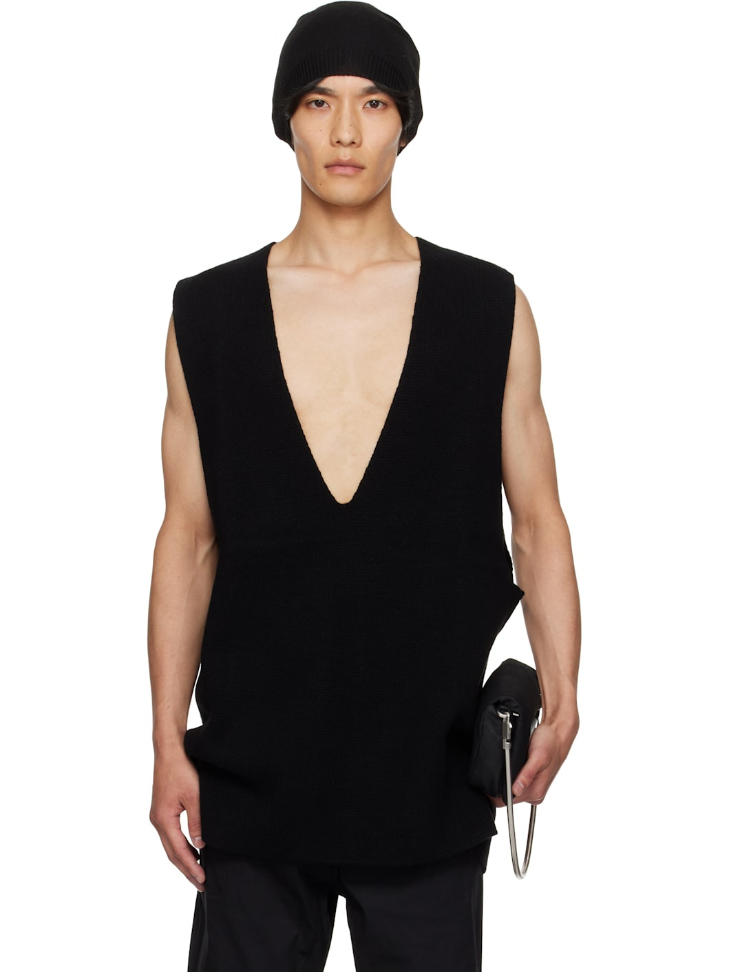 Double-faced knit cashmere-blend sweater vest. · Nepped yarns throughout · V-neck · Central reverse-knit seam at back Supplier color: Black 97% cashmere, 3% wool. Made in Italy 252232M206005
