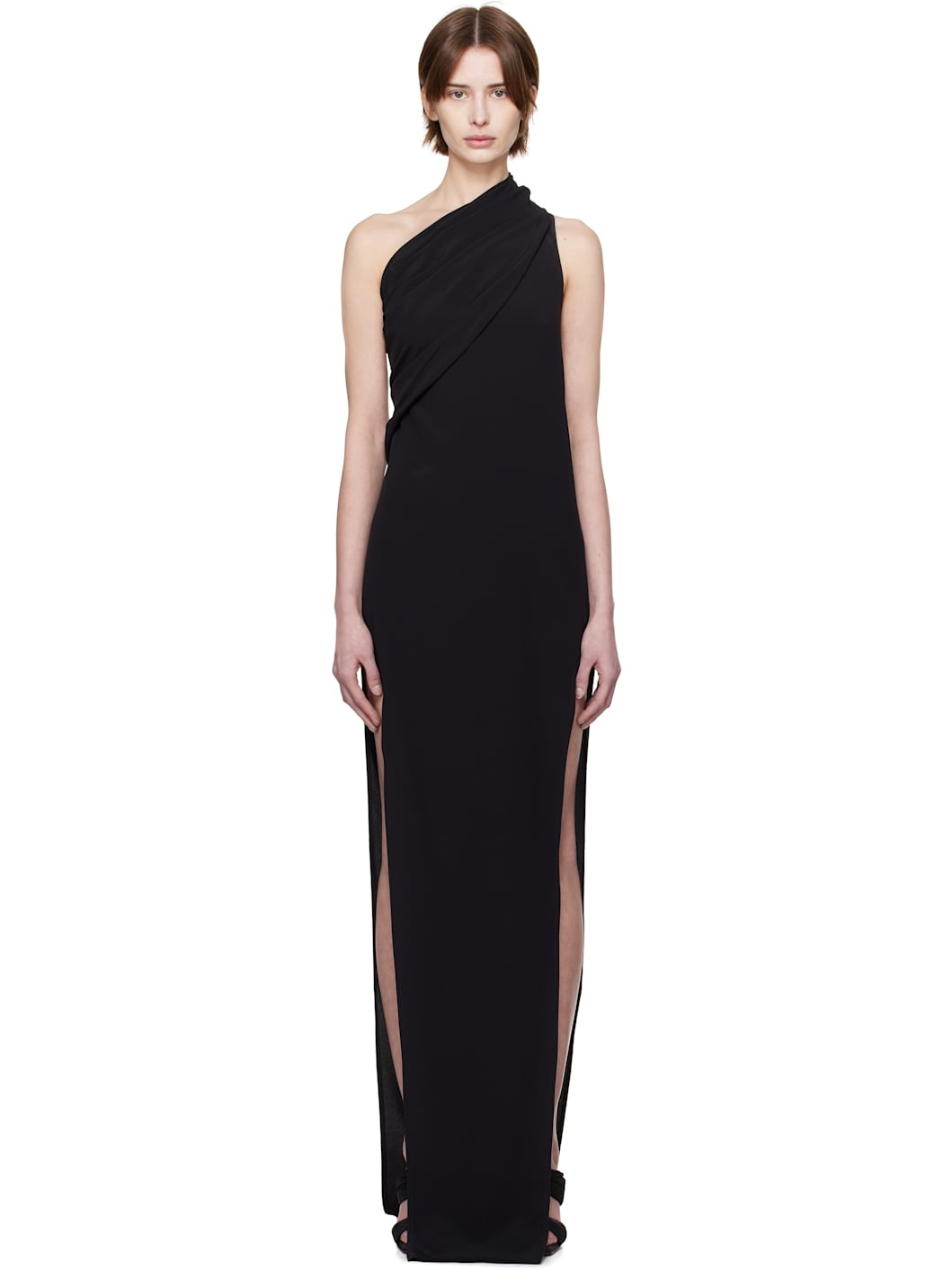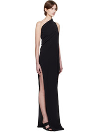 FSC®-certified acetate- and silk-blend crepe maxi dress. Gathering and draping throughout. · Single-shoulder construction · Slit at side seams · Central seam at back Supplier color: Black 64% acetate, 36% silk. Made in Italy 251232F055023
