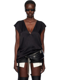 Lightweight acetate- and viscose-blend charmeuse T-shirt. · Plunging V-neck · Central seam at front and back · Cap sleeves Supplier color: Black 61% acetate, 39% viscose. Made in Italy 251232F110049