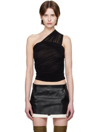 Semi-sheer ECOVERO™-certified viscose crepe jersey top. Gathering and draping throughout. · Single-shoulder construction · Raw edge at hem Supplier color: Black 100% viscose. Made in Italy 251232F111047