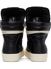 High-top coated calfskin sneakers in black. · LWG-certified calfskin · Perforations at toe · Lace-up closure · Pull-loop at extended padded tongue · Quilted padded collar · Applique at sides · Zip closure at inner side · Buffed calfskin lining · Treaded rubber sole Supplier color: Black/Black/Milk Upper: calfskin. Sole: rubber. Made in Italy 251232M236073