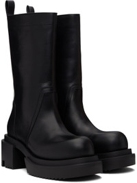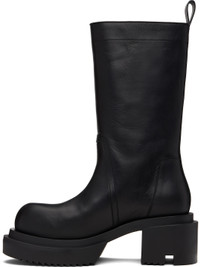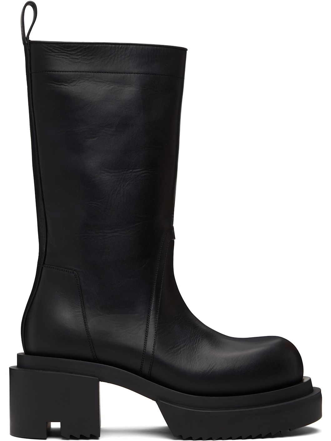 Knee-high grained leather boots. · Pull-loop at collar · Tiered rubber platform midsole · Rubber block heel · Treaded rubber sole · Platform: H1.75" · Heel: H3" Supplier color: Black Upper: leather. Sole: rubber. Made in Italy 252232M223011