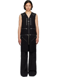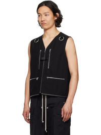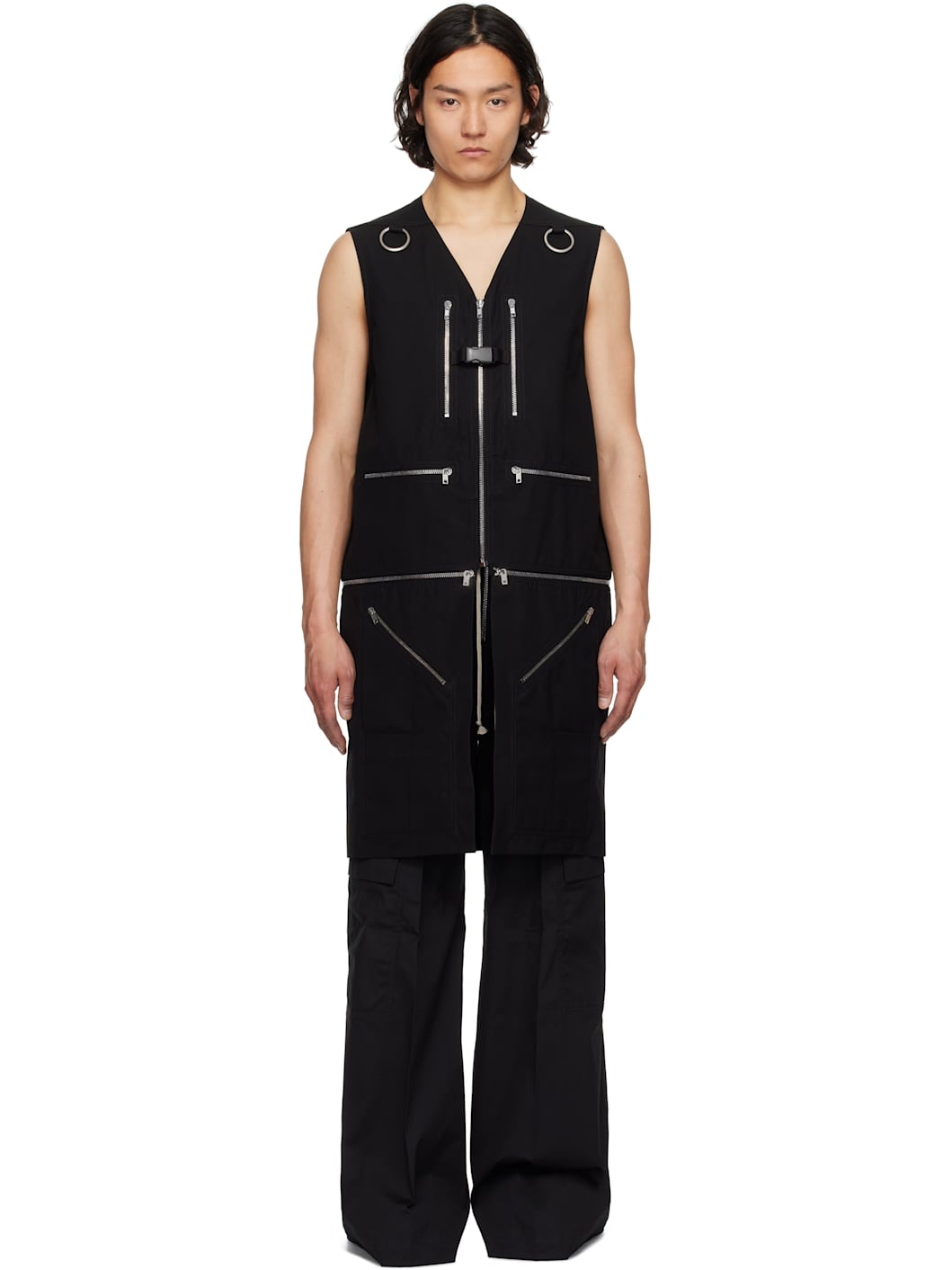 Cotton canvas vest. · Y-neck · Press-release tab at zip closure · O-rings at front · Zip and welt pockets · Zip panel at waist for alternate styling · Zip pockets at back · Central vent at back · Zip pockets at interior · Full twill lining · Silver-tone hardware Part of the BONOTTO capsule collection. Supplier color: Black 100% cotton. Made in Italy 251232M185003
