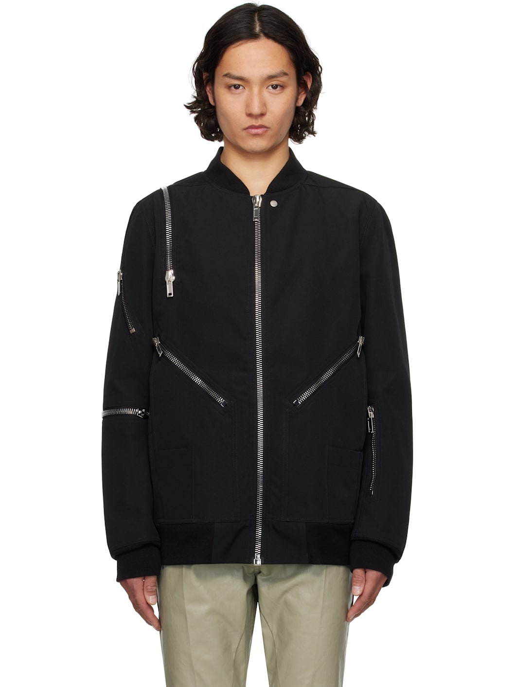 Recycled polyester- and cotton-blend canvas jacket. · Rib-knit stand collar, hem, and cuffs · Zip closure · Zip, welt, and patch pockets · Zip vent at shoulder · Utility pocket at sleeves · Zip pockets at interior · Full twill lining Part of the BONOTTO capsule collection. Supplier color: Black Body: 70% recycled polyester, 30% cotton. Trim: 100% virgin wool. Lining 1: 100% cotton. Lining 2: 100% cupro. Lining 3: 100% recycled polyester. Made in Italy 251232M175007