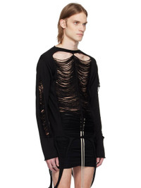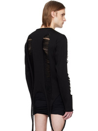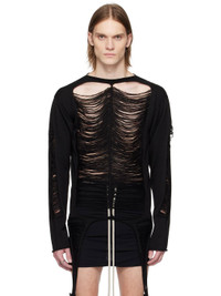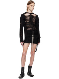 Open-knit virgin wool sweater. Rolled edges, distressing, and laddering throughout. · Boatneck · Extended trim at hem Supplier color: Black 100% virgin wool. Made in Italy 251232M201038