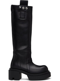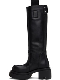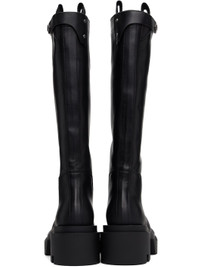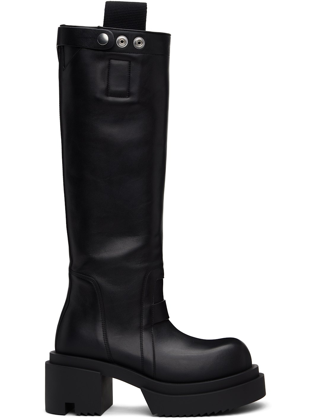 Knee-high vegetable-tanned grained calfskin boots in black. · LWG-certified calfskin · Strap at vamp · Webbing pull-loops and press-stud tab at collar · Grained calfskin lining · Platform rubber midsole · Treaded rubber sole · Platform: H1.5" · Heel: H3" Supplier color: Black Upper: calfskin. Sole: rubber. Made in Italy 251232F115004
