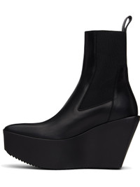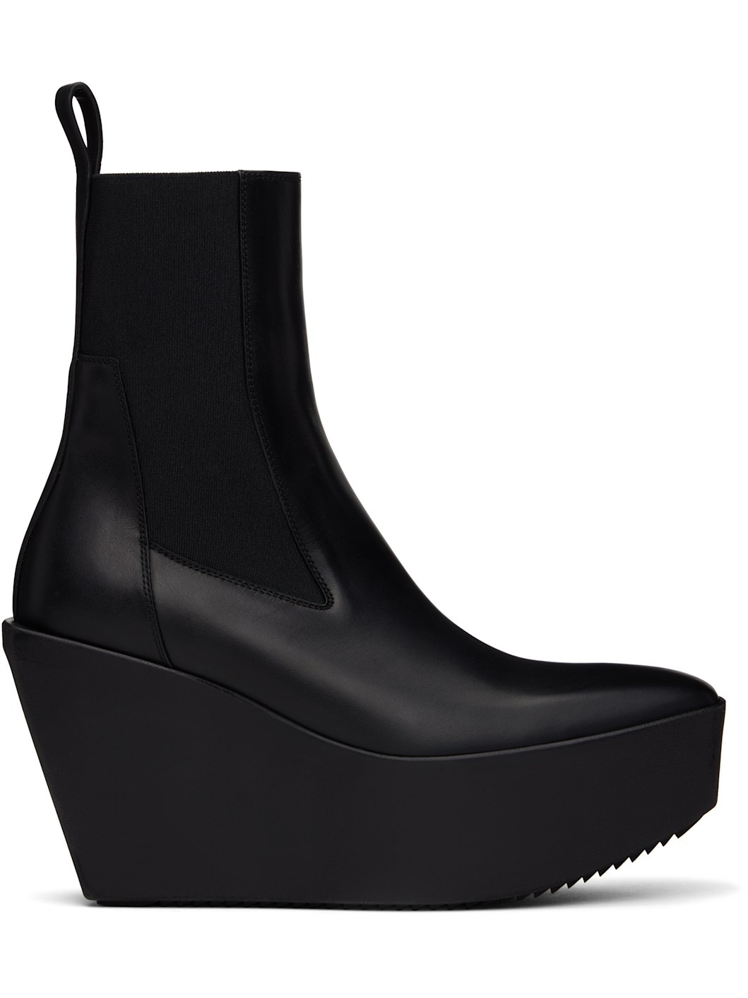 Ankle-high vegetable-tanned washed calfskin Chelsea boots in black. · LWG-certified calfskin · Square toe · Pull-loop at heel collar · Elasticized gusset at sides · Buffed calfskin lining · Wedge heel and platform midsole · Treaded rubber sole · Platform: H2.25" · Heel: H4.75" Supplier color: Black Upper: calfskin. Sole: rubber. Made in Italy 251232F113007