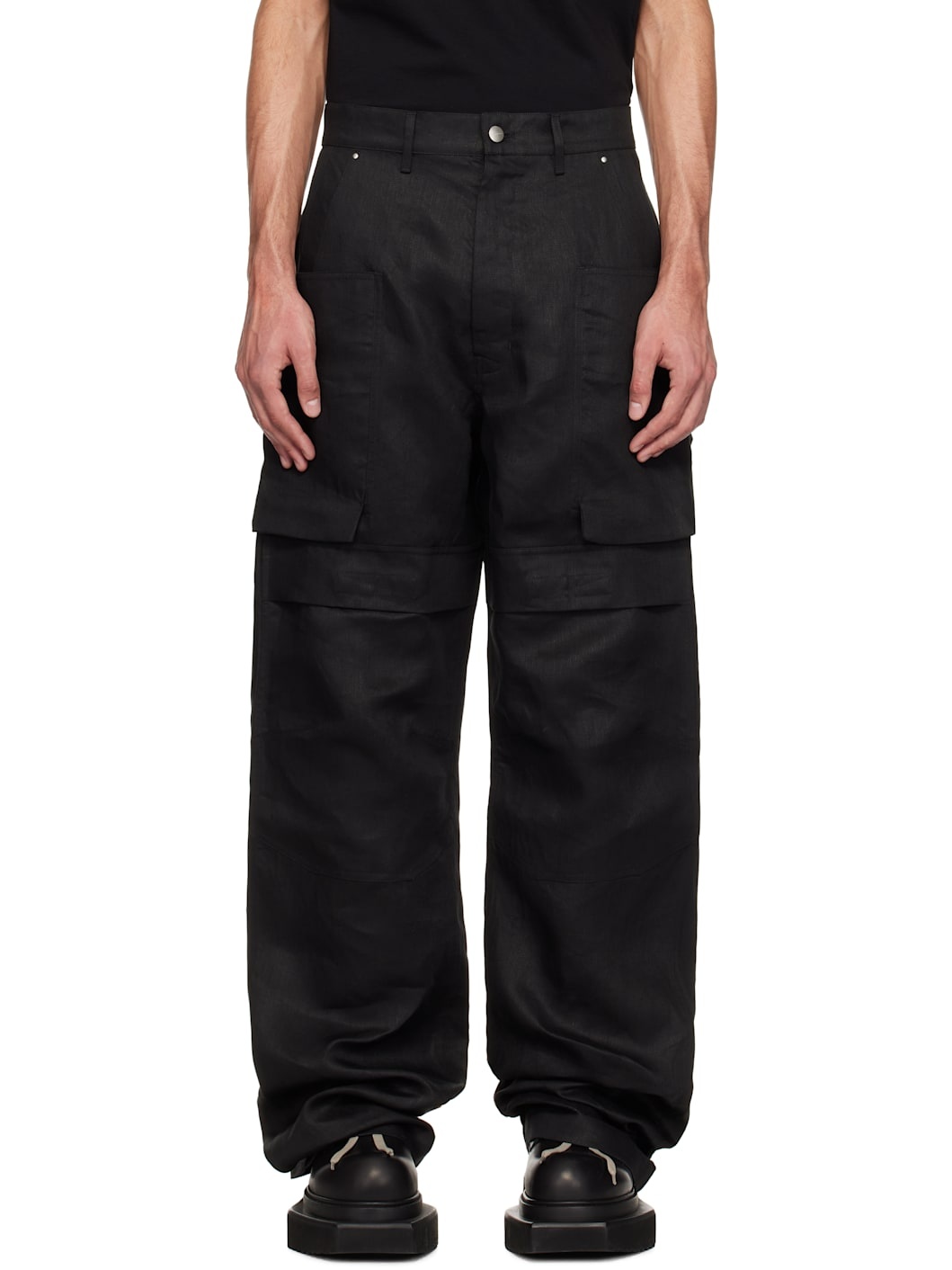 Linen twill cargo pants. · Low-rise · Belt loops · Four-pocket styling · Zip-fly · Flap pockets at front · Patch pocket at outseams · Hammer loops at back · Logo-engraved silver-tone hardware Supplier color: Black 100% linen. Made in Italy 251232M188005