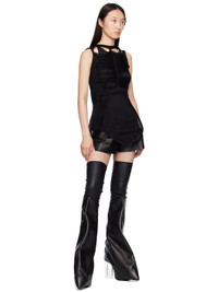 Thigh-high stretch grained lambskin and grained calfskin boots. · LWG-certified · Paneled construction · Pointed toe · Concealed elasticized gusset at sides · Plain-woven and buffed calfskin lining · Transparent plexiglass block heel · Covered platform midsole · Leather sole with treaded rubber injection · Platform: H3" · Heel: H4.75" Supplier color: Black/Clear Upper: lambskin, calfskin, textile. Sole: leather, thermoplastic polyurethane, rubber. Made in Italy 251232F115008