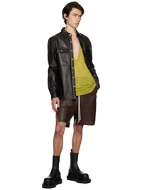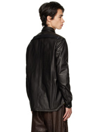 Padded grained calfskin jacket. · Spread collar · Concealed zip closure · Welt pockets · Single press-stud barrel cuffs · Webbing strap and rivets at back yoke · Zip pockets at interior · Partial viscose-blend satin lining · Partial cupro satin lining Supplier color: Black