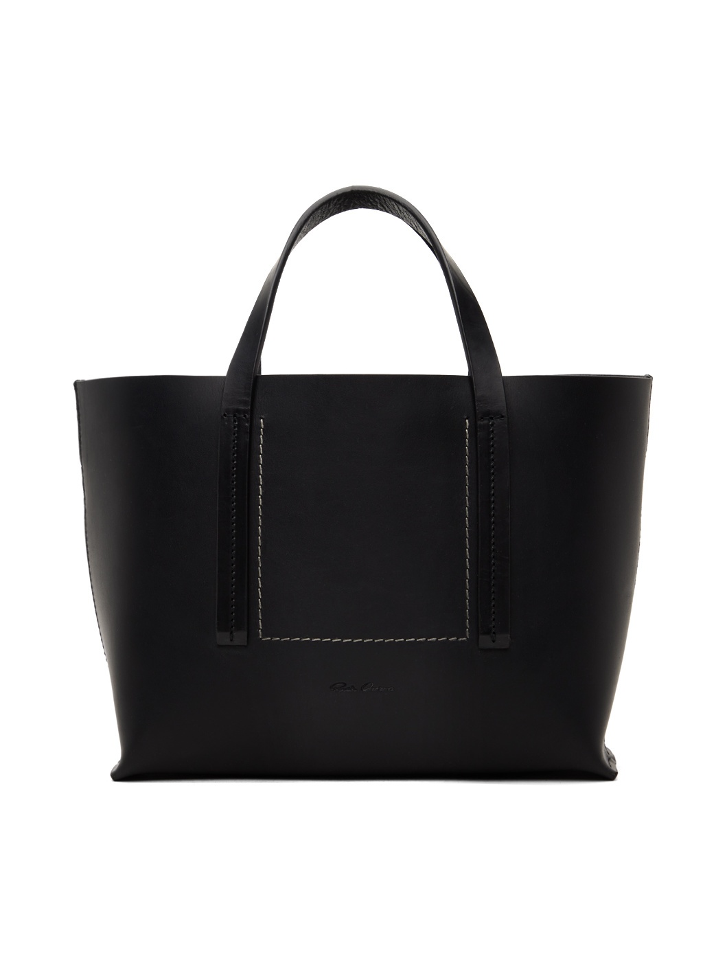 Structured heavyweight LWG-certified vegetable-tanned leather tote in black. · Twin carry handles · Detachable and adjustable crossbody strap · Topstitching and embossed logo at face · Open throat · Zip pocket and patch pockets at interior · Unlined · H14.5" x W14.5" x D4" Supplier color: Black