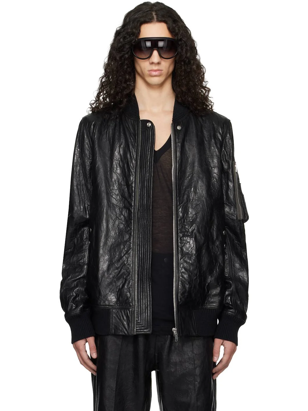 Vegetable-tanned tumbled lambskin jacket. · Rib-knit stand collar, hem, and cuffs · Press-stud fastening at collar · Zip closure · Zip pockets · Utility pocket at sleeve · Webbing strap at back yoke · Zip pockets at interior · Fully lined Supplier color: Black Body: 100% lambskin. Lining: 100% cotton. Sleeves lining: 100% cupro. Made in Moldova 261232M181016