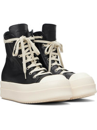 High-top vegetable-tanned grained leather sneakers. · Leather-cap toe · Lace-up closure · Zip closure and metal eyelets at inner side · Treaded platform rubber sole · Platform: H2.25" Supplier color: Black/Milk/Milk Upper: leather. Sole: rubber. Made in Italy 261232M236023