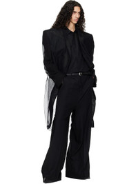 Paneled recycled nylon tulle and silk chiffon coat. Partial cotton canvas underlay. · Peaked lapel · Button closure · Welt pockets at chest · Seam pockets at waist · Padded shoulders · Buttoned surgeon's cuffs · Central vent at back hem · Zip pockets at interior · Partially lined Supplier color: Black Body: 100% recycled nylon. Trim: 100% silk. Lining: 100% cotton. Made in Italy 261232M176005