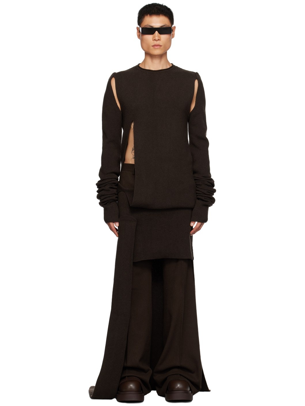 Rib knit recycled cashmere- and wool-blend sweater. Cutouts throughout. · Layered construction · Rolled edge at crewneck · Extended trim at asymmetric hem Supplier color: Brown 97% recycled cashmere, 3% wool. Made in Italy 232232M201061