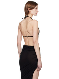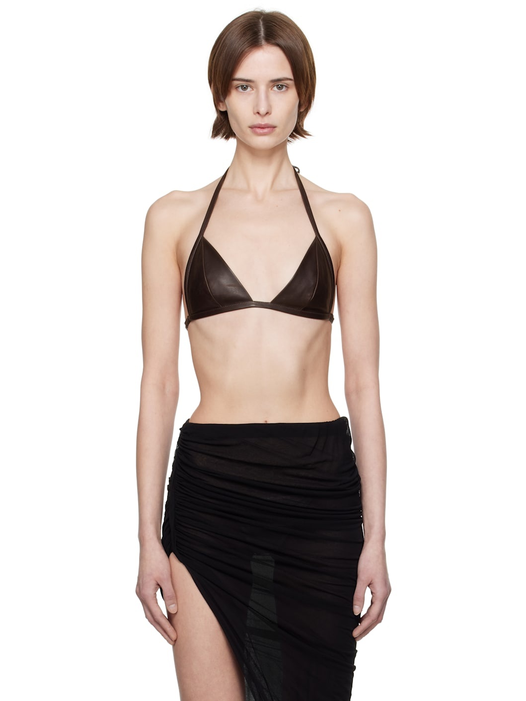 Buffed lambskin bra. · V-neck · Self-tie halter strap · Hook-eye elasticized strap at back · Cotton lawn cloth lining Supplier color: Mahogany Body: 100% lambskin. Lining: 100% cotton. Made in Moldova 251232F073000