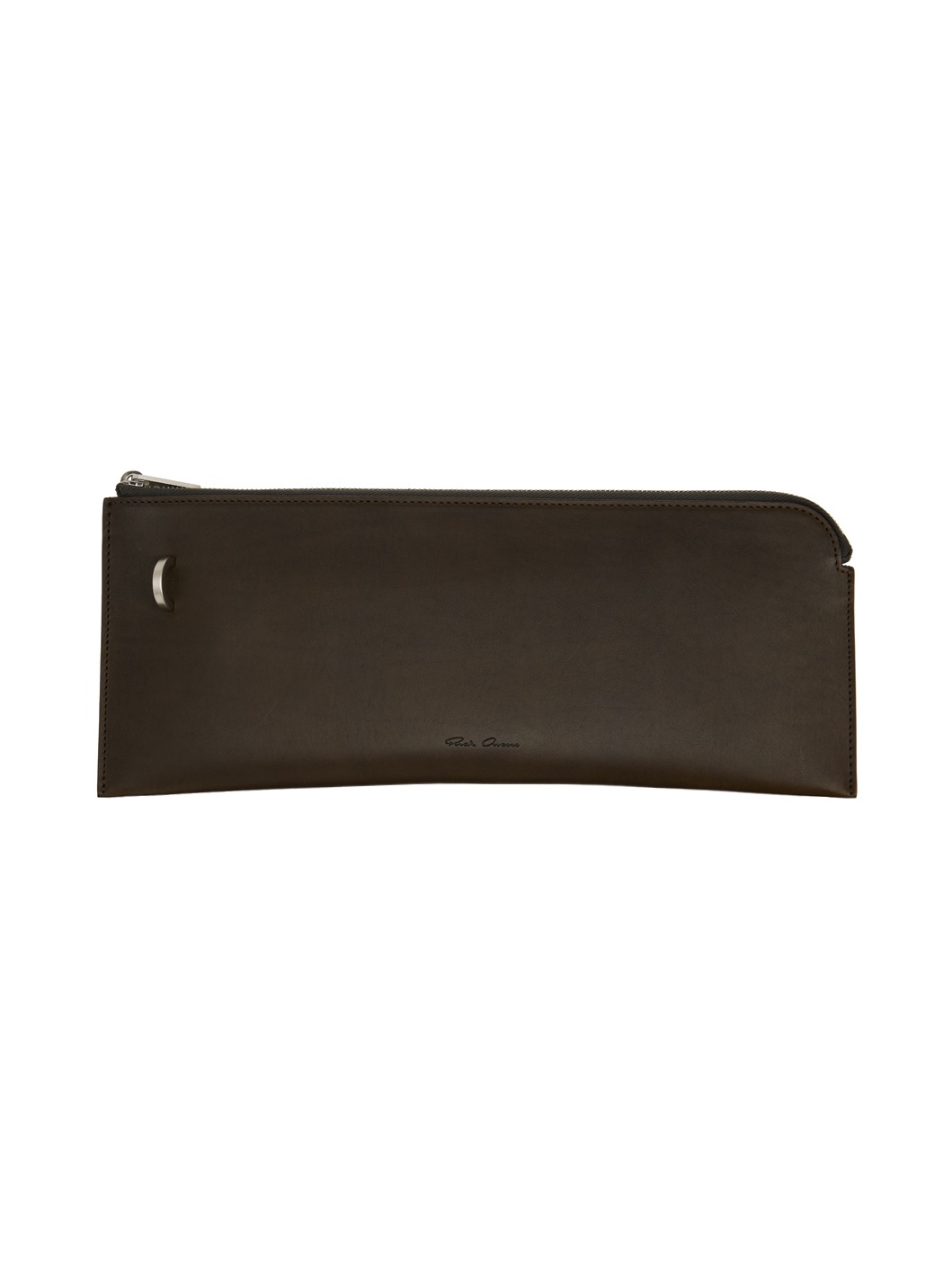 Heavyweight LWG-certified buffed leather wallet in brown. · D-ring and logo embossed at face · Zip closure · Unlined · Logo-engraved silver-tone hardware · H5" x W12.5" Supplier color: Bean Leather. Made in Italy 242232M164002