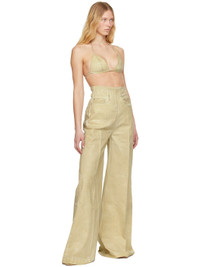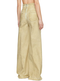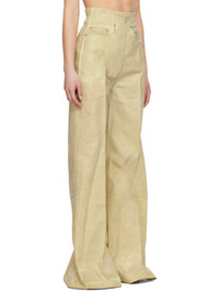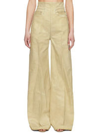 Overdyed and foil-coated lightweight stretch denim jeans. Fading throughout. · ZDHC-certified denim · Wide-leg · Six-pocket styling · Creased legs · Zip closure at back Each item is unique. Please note that coloration and finishing may vary. Supplier color: Parchment Body: 90% cotton, 7% polyester, 3% rubber. Lining: 100% cotton. Made in Italy 251126F069004