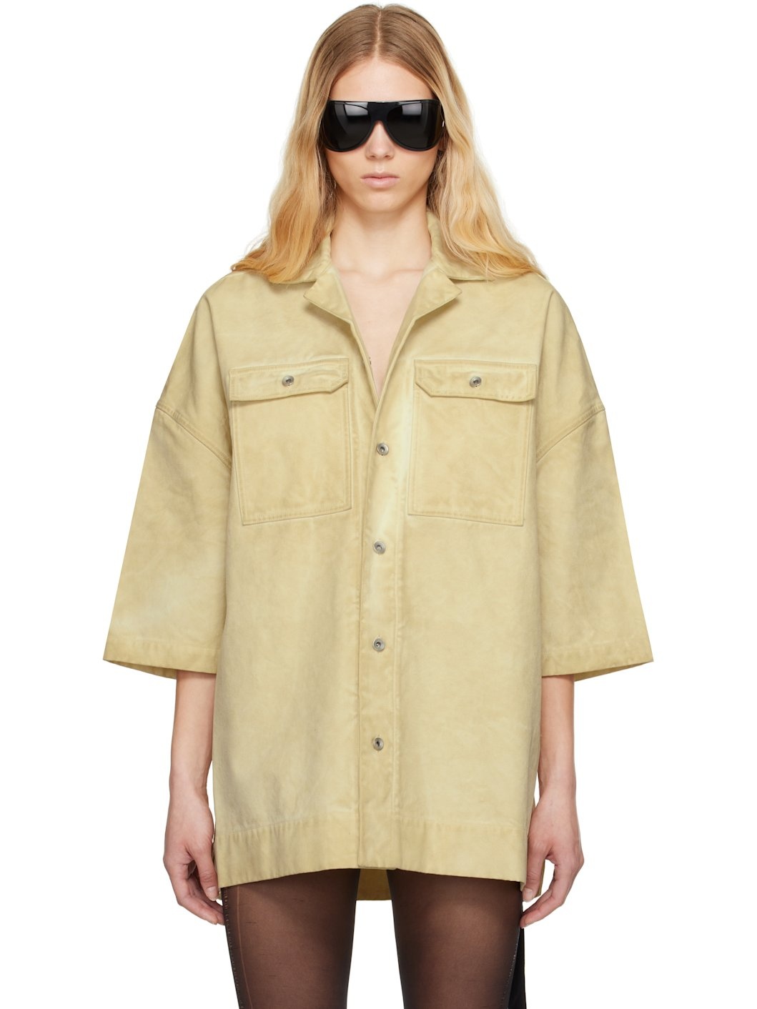 Foil-coated and garment-dyed organic cotton canvas shirt. Fading throughout. · GOTS-certified organic cotton · Open spread collar · Button closure · Flap pockets · Logo-woven webbing strap at interior Each item is unique. Please note that coloration and finishing may vary. Supplier color: Parchment 100% organic cotton. Made in Italy 251126F109002
